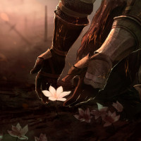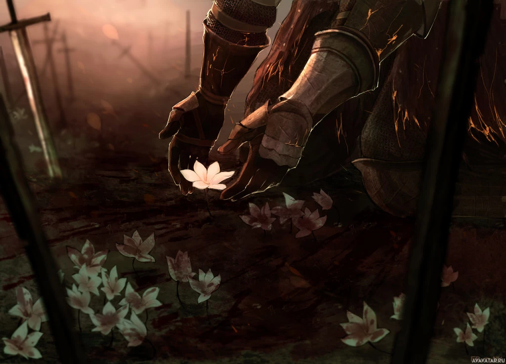 the midst of chaos or conflict. It could be an artistic representation or a still from a video game or movie scene. The image evokes themes of resilience, the importance of beauty and nature amidst hardship, or perhaps symbolizes hope amidst adversity.