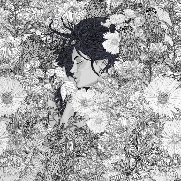 a sense of tranquility and harmony with nature. The art style is intricate with