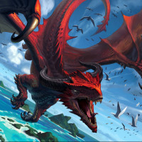 clear skies with clouds, and what appears to be an island or coastline beneath the dragons. The overall style suggests this image could be from a fantasy-themed game or illustration.