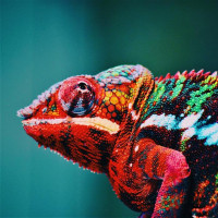 a vibrant chameleon. It is known for its ability to change color, which can range from shades of green, red, and orange depending on the species and the environment it inhabits. This