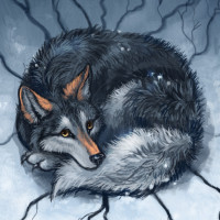 The image features a stylized illustration of a wolf. The wolf is depicted in its