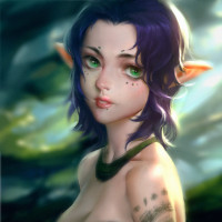 animated character who appears to be an elf with purple hair. She has large