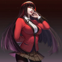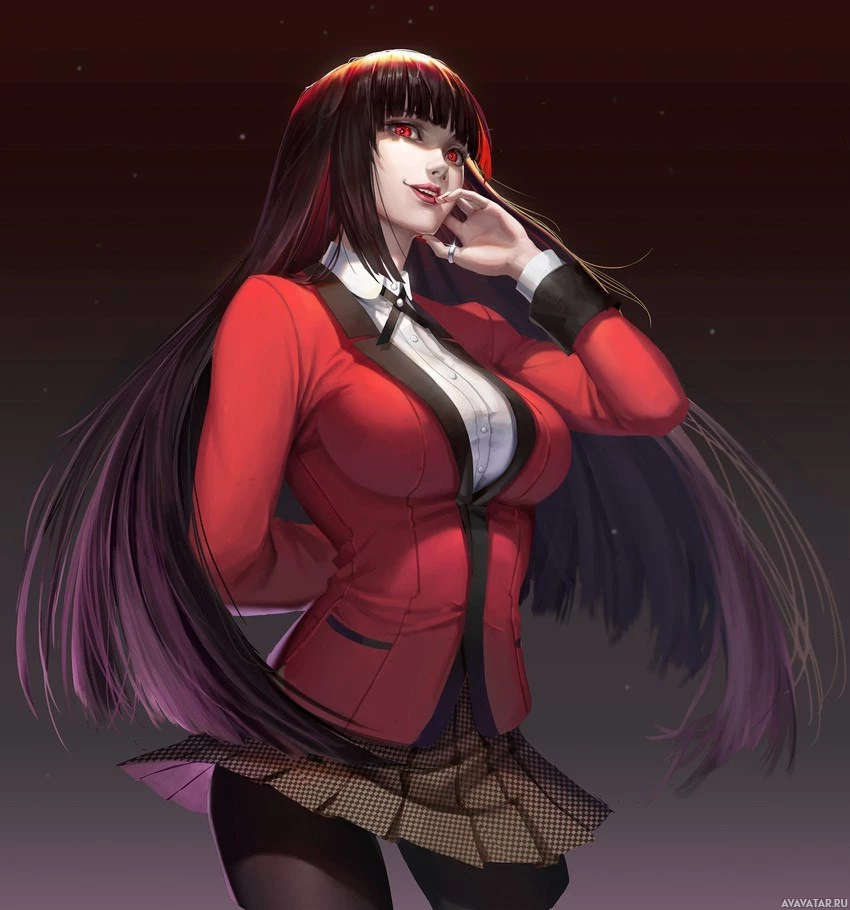 an animated character styled in a gothic or vampire-like fashion. She has long