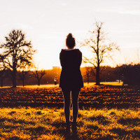the golden hour of photography when lighting conditions are particularly beautiful due to the angle of the sun. The person appears to be facing away from the camera, with their back turned towards the viewer, and they seem to be looking at or perhaps contemplating