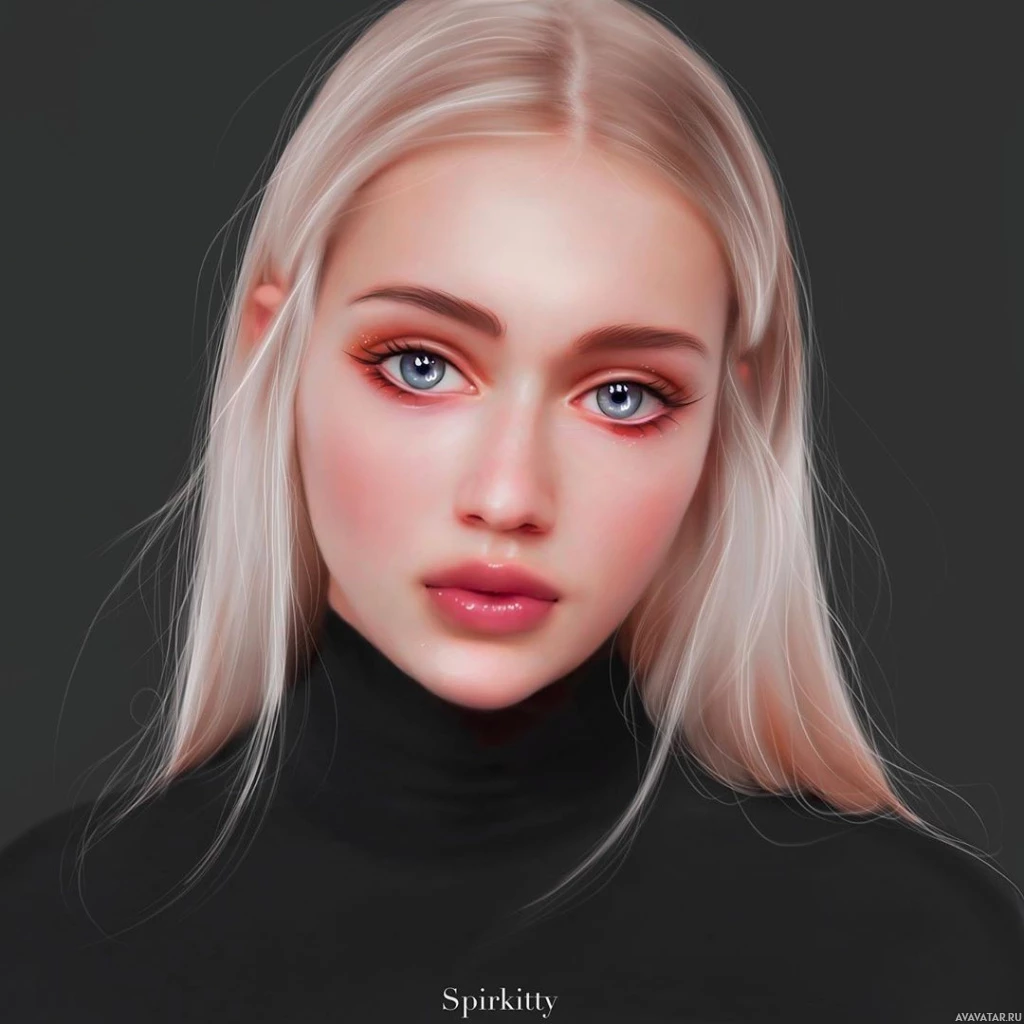 blonde hair and blue eyes. She has a high-definition, lifelike appearance with detailed skin texture, natural makeup, and realistic features like eyebrows, lips, and