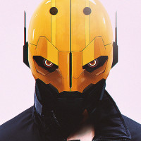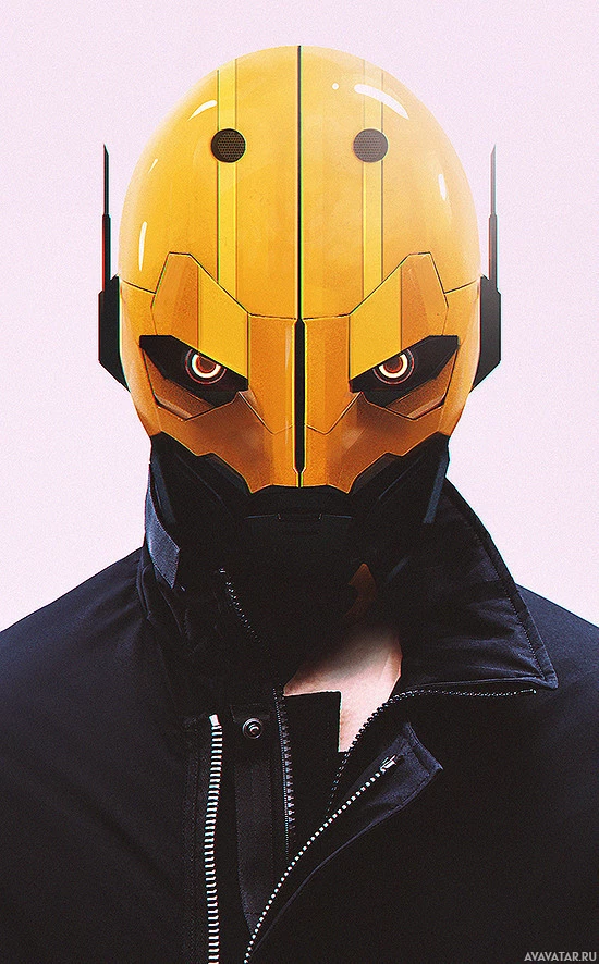 The image features a person wearing a mask that is designed to look like the helmet of a robotic character, possibly inspired by a character from