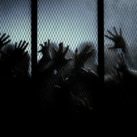 multiple hands reaching out towards a fence or barrier. This creates an impression that the figures are desperately trying to grasp something beyond the barrier, which is often associated with