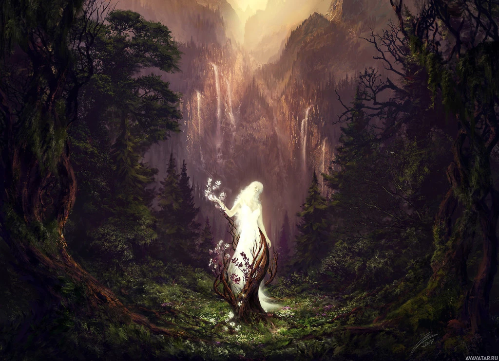 fantasy genres such as elves or enchanted creatures inhabiting such realms.