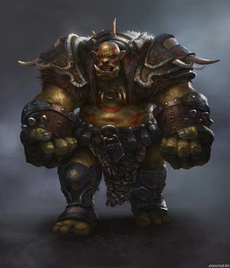 fantasy settings like role-playing games or literature. The orc in the image has a distinctive appearance with dark skin, pointed ears, and an intimidating