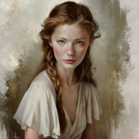 braided hair and her attire is reminiscent of ancient Greco-Roman styles, suggesting she could be portrayed as a character from mythology or history. The art style appears to be realistic with