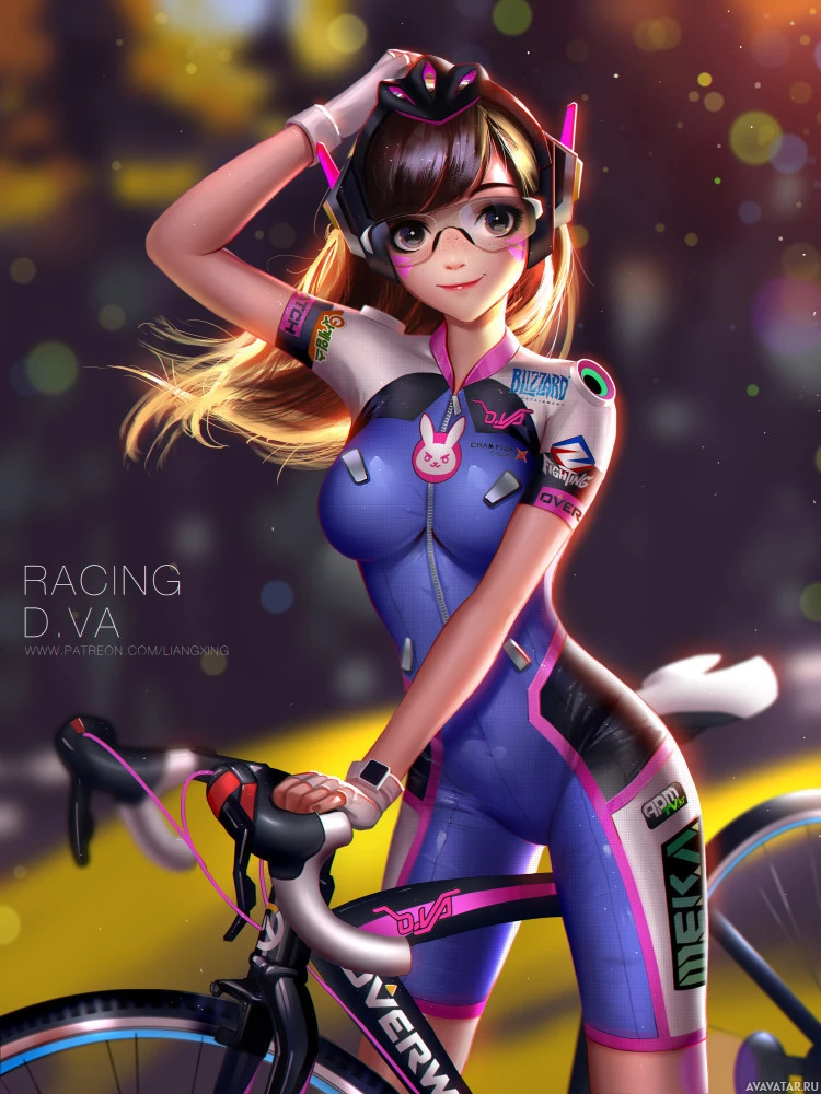 blonde hair and is holding what appears to be a bicycle handlebar or steering wheel. The character is smiling and posing in