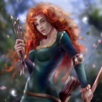 long hair and attire resembling the traditional Scottish outfit worn by Merida. The art style is digital, giving a detailed and polished look to the image.