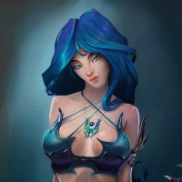 kind of fantasy-inspired outfit that includes a top with fish-like designs or elements. It appears to be a digital art piece showcasing the artist's ability to create detailed characters with