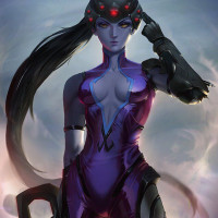 the video game "Overwatch." This character is known as Widowmaker, and she is depicted in her