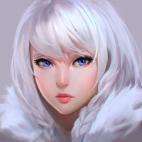 fair skin and is wearing what appears to be a fur lined hood or cloak, suggesting a cold environment or a style that might be associated with winter or fantasy themes. The character's expression is one of concern or worry, as they look slightly away from the viewer. This image could be related to anime, manga, or digital artwork.