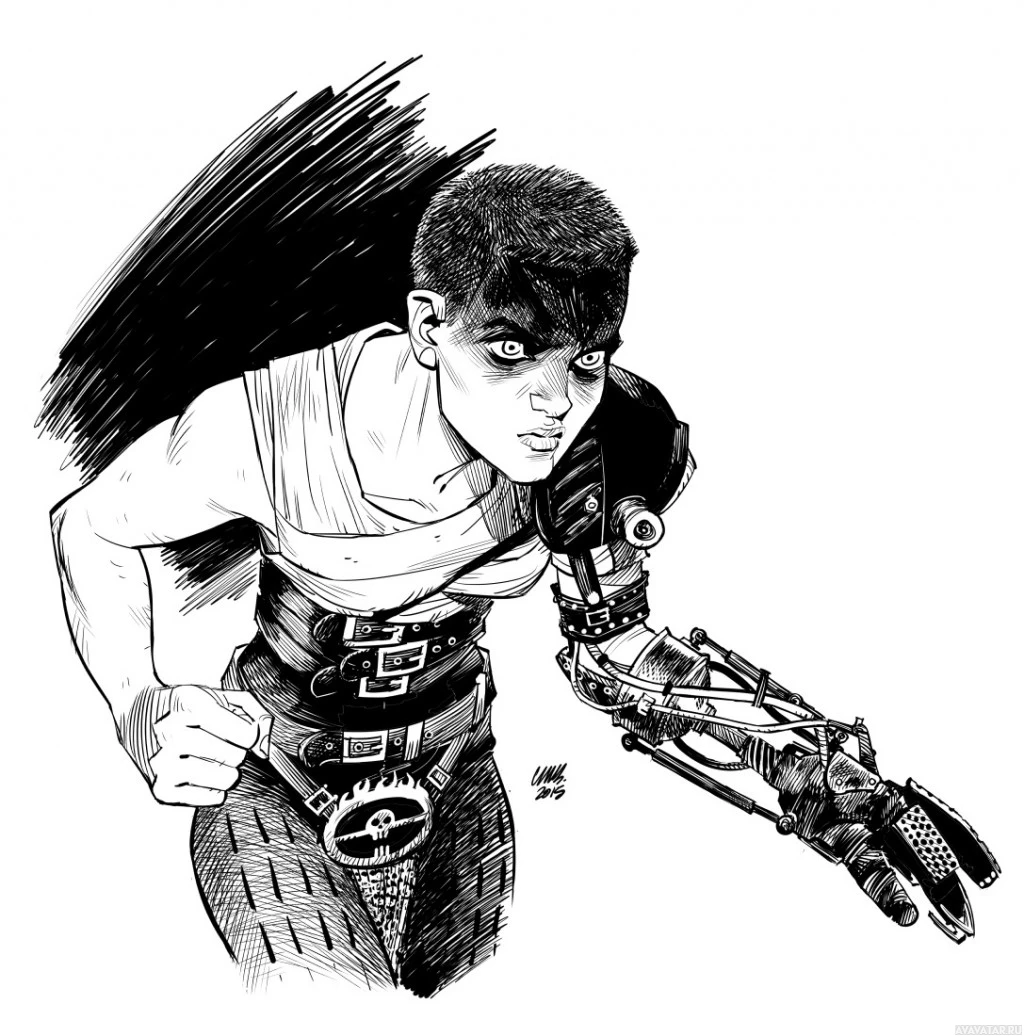 iconic costume, which includes a tank top and trousers with various utility belts around her waist. Her hair is short and spiked, and she has a serious or determined expression on her face. The artwork is drawn in a style that captures the intensity of the character's persona and the gritty,