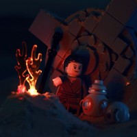 the Star Wars franchise: one figure is wearing attire similar to Rey's, while the other looks like BB-8, the droid character known for being associated with Rey in the films. The overall setting and elements within it suggest a playful or creative take on surviving a night outdoors, possibly referencing scenes from the Star Wars movies where such situations are depicted.