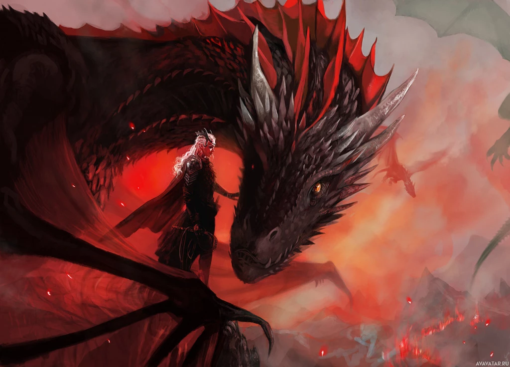 blonde hair, which are traits associated with Daenerys Targaryen, also known as the "Mother of Dragons" from the series. The dragon has