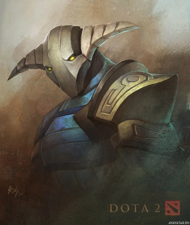 the video game Dota 2. This character is known as Sven, and he is a barbarian with distinctive features like horns on his head and a blue and gold armor. Sven is a powerful melee