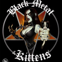 a playful take on the heavy metal subculture, suggesting that even "kittens" might enjoy or appreciate black metal music. The image also contains other elements commonly associated with