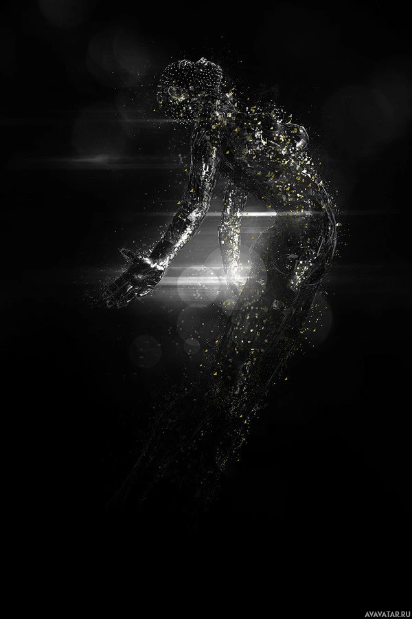 The image depicts an artistic representation of a figure that appears to be
