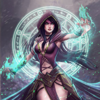 a female character dressed in fantasy-style clothing, possibly a witch or magic user given the attire and the use of magic. She has