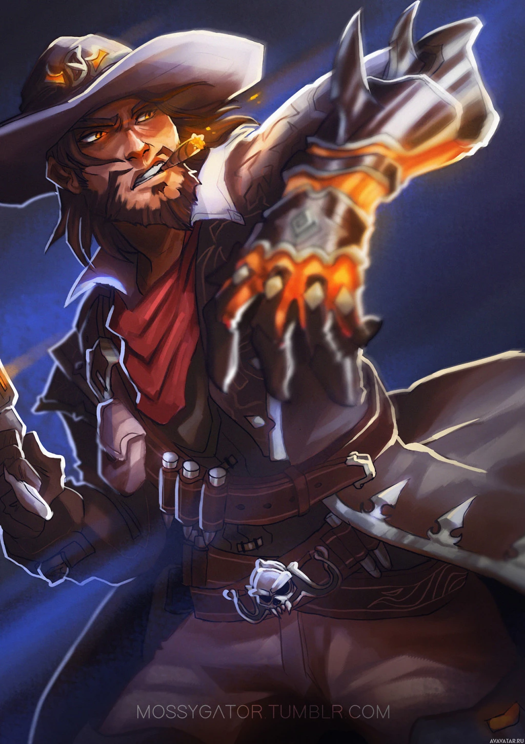 This is an illustration of a character who appears to be a gunslinger or