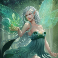 a fantasy character, specifically a fairy with wings. The fairy is shown in a magical