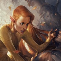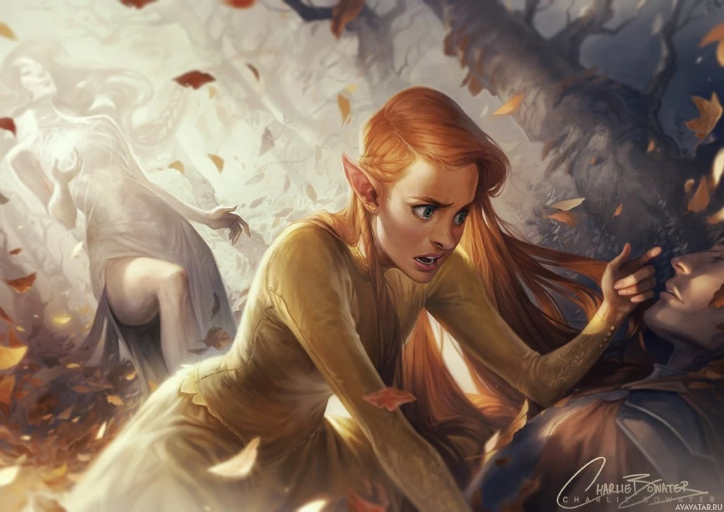 The image features an illustration of a red-haired elf in