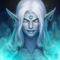 a fantasy character that appears to be a drow, which is often associated with dark elves in fantasy settings. The character has