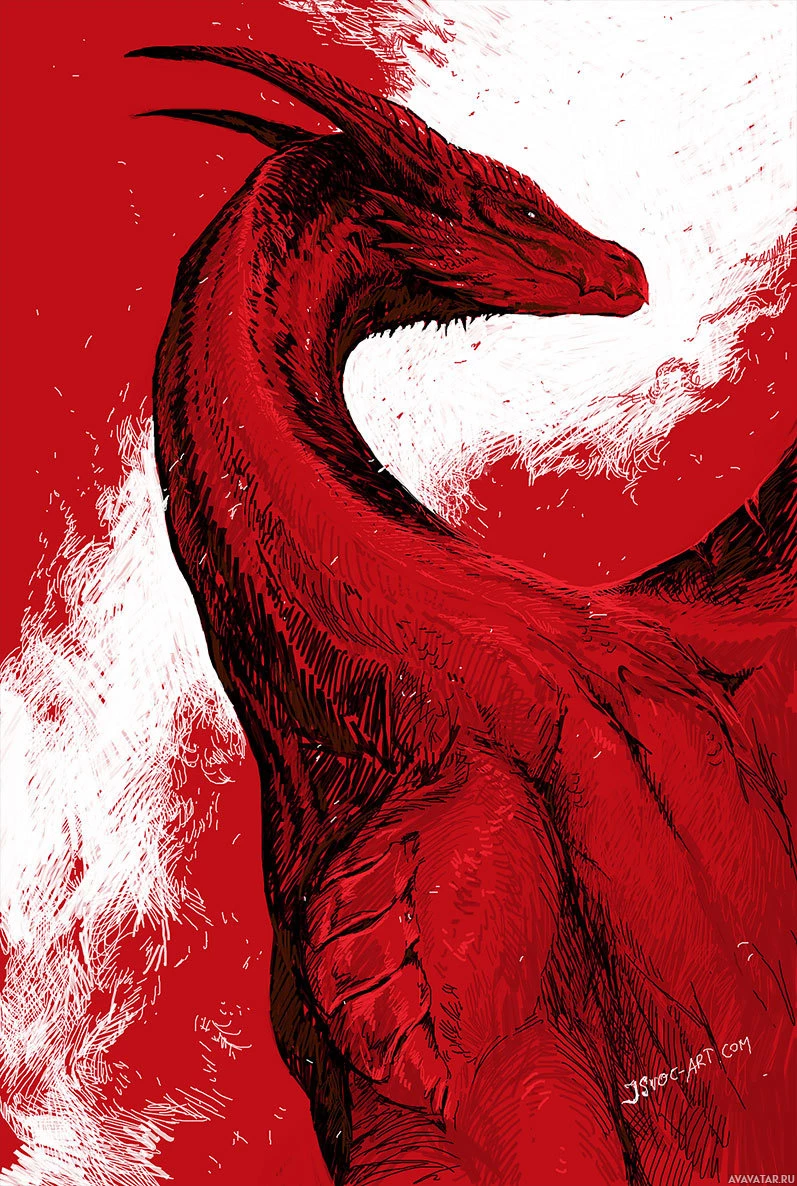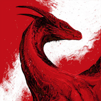 red scales and is set against a backdrop that appears to be red or orange with some splashes or textures giving the appearance of flames or explosions. The style suggests it could be from a graphic novel,