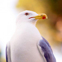 orange eyes, which is characteristic of this species. Seagulls are known for their ability to adapt well to