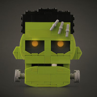 The image shows a Lego figure of Frankenstein's monster. It appears to be a LEGO interpretation of the classic horror movie character, with green coloring and an expressive face.
