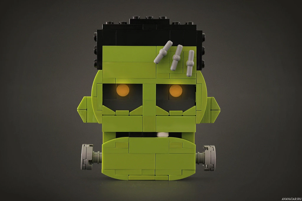 На картинке изображена фигура Лего монстра Франкенштейна. Похоже, что это интерпретация LEGO классического персонажа фильма ужасов с зеленой окраской и выразительным лицом.