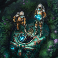advanced technology. The setting appears to be on another planet, as evidenced by the unique flora and