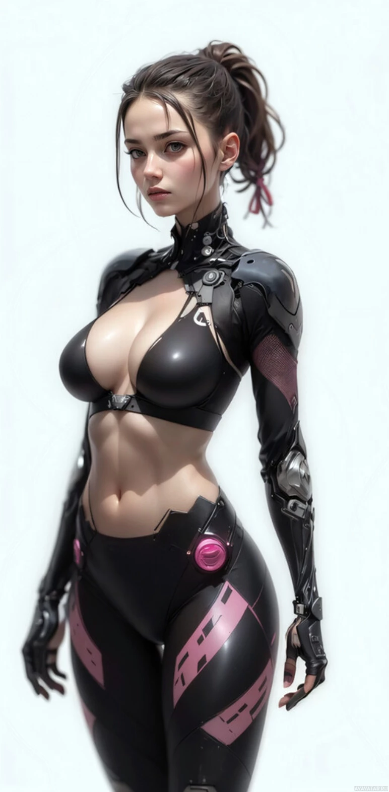 science fiction given the context provided. The background is plain and light in color, which helps to highlight her character or design.