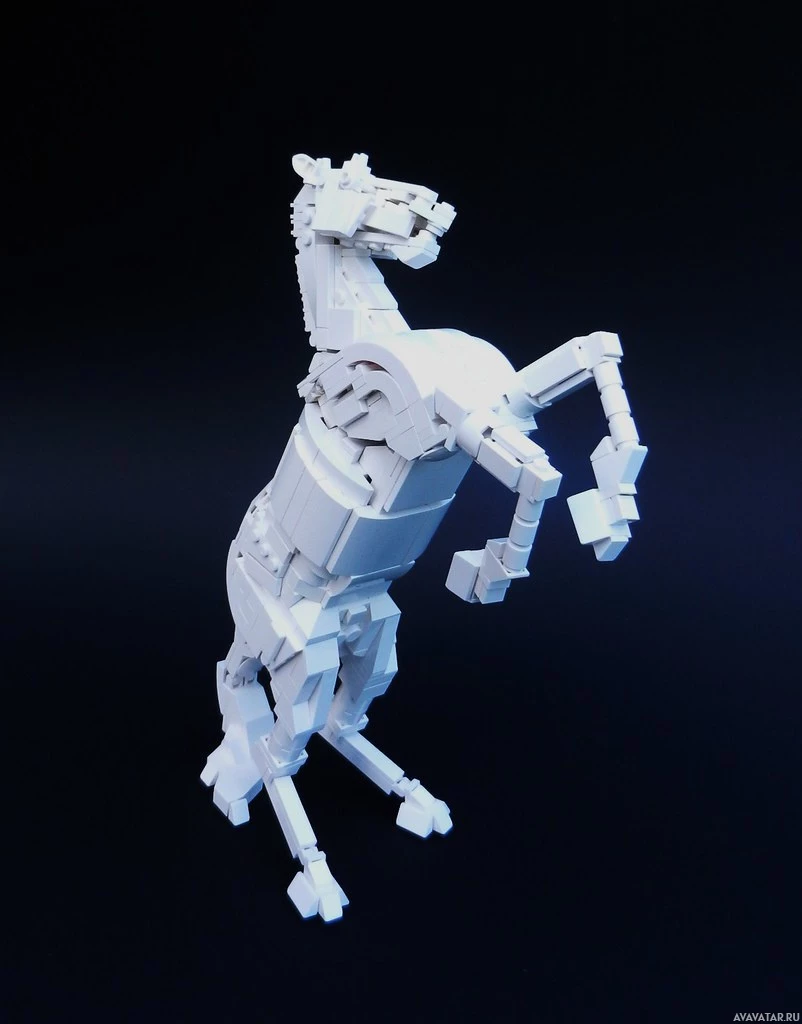 Lego figure of a horse. The horse is depicted in
