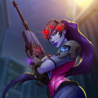 The image features an animated character, known as Widowmaker from