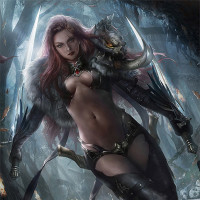 a combat role. Her attire includes elements that could be reminiscent of a barbarian or