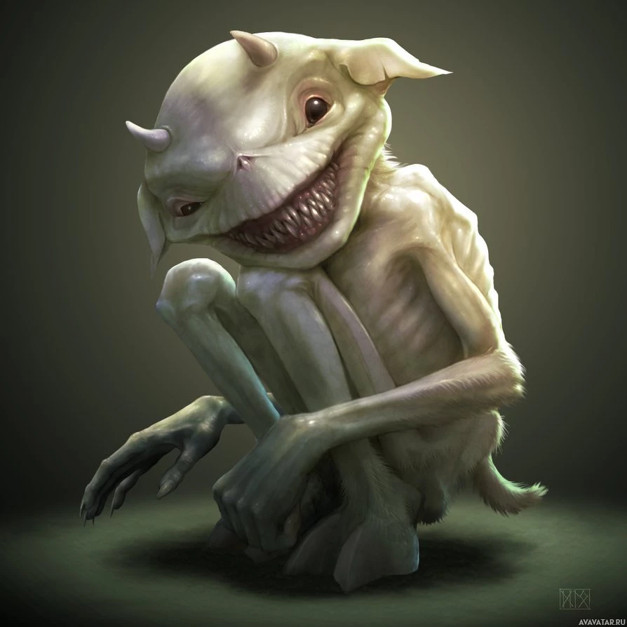Картинка показывает фантастического монстра. По-видимому, это орк, который часто изображается как человекоподобное существо с искаженным внешним видом, таким как большие уши и острые зубы. Эта конкретная иллюстрация подчеркивает чудовищную природу орка через его преувеличенные черты и угрожающее выражение.