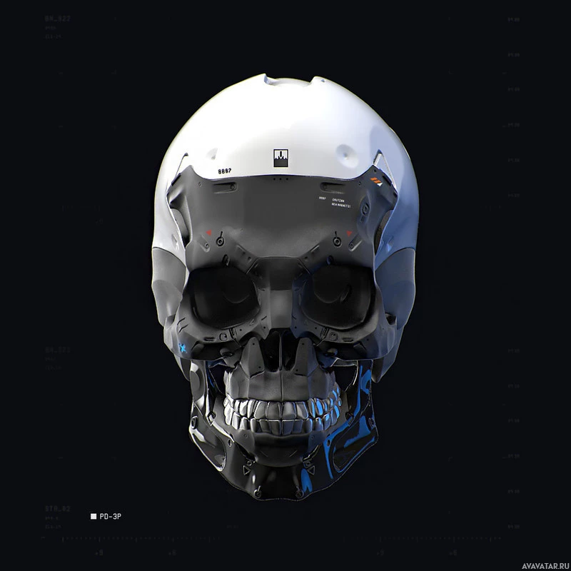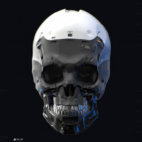a robotic skull. It has mechanical components integrated into its structure, suggesting