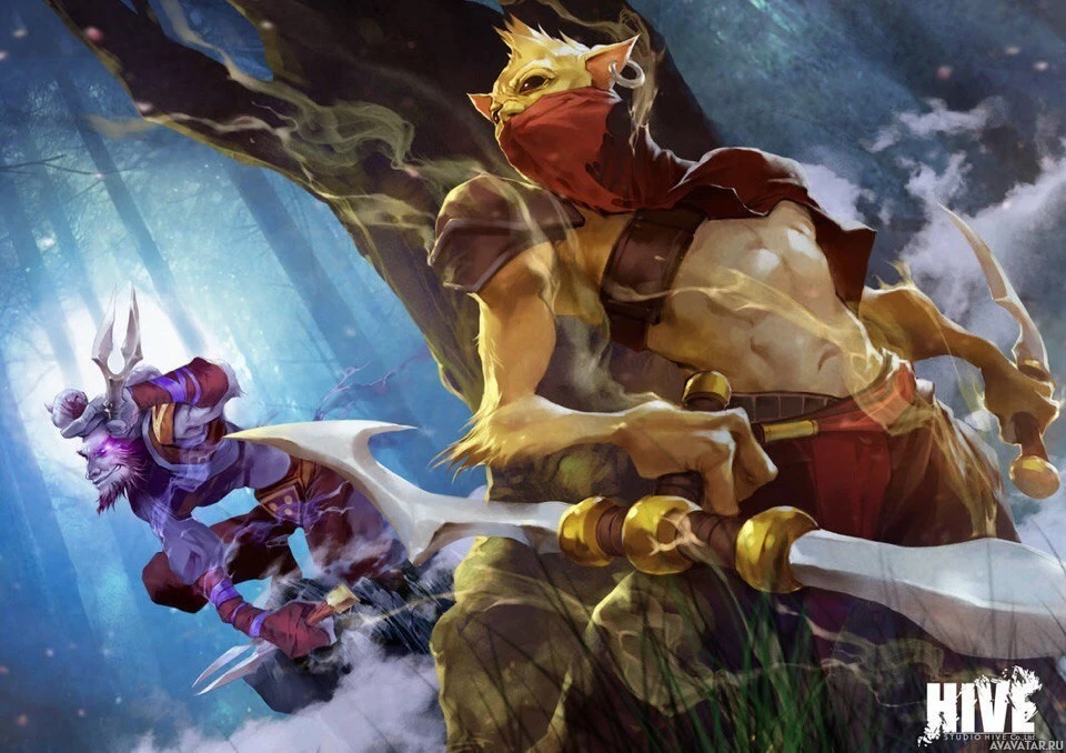 promotional graphic for the character Riki from the game Dota 2. Riki is depicted as