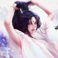 brunette hair. She is dressed in what looks like traditional Japanese attire, possibly indicating that she may be from a fantasy or