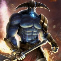 unique abilities and being a strong melee fighter. He's wearing armor that matches his aggressive playstyle and wielding an axe, which is