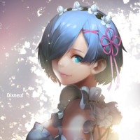 an animated character with blue hair. She is dressed in what appears to be a fantasy or