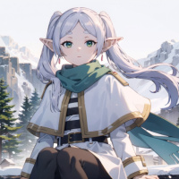 winter clothing, including a scarf and boots, which suggests the setting might be during a cold season or perhaps it's a fictional scene within an animated context like "Frieren." The character seems to have a contemplative or thoughtful expression on her face, and there are snow-covered