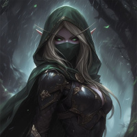 a fantasy setting. The background suggests a forest or woodland environment, which complements the elven theme.