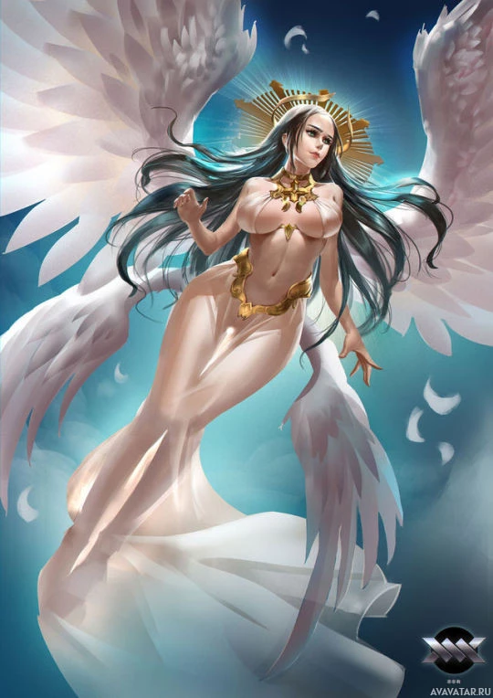 a fantasy figure that resembles an angelic being. This character has wings and is depicted with