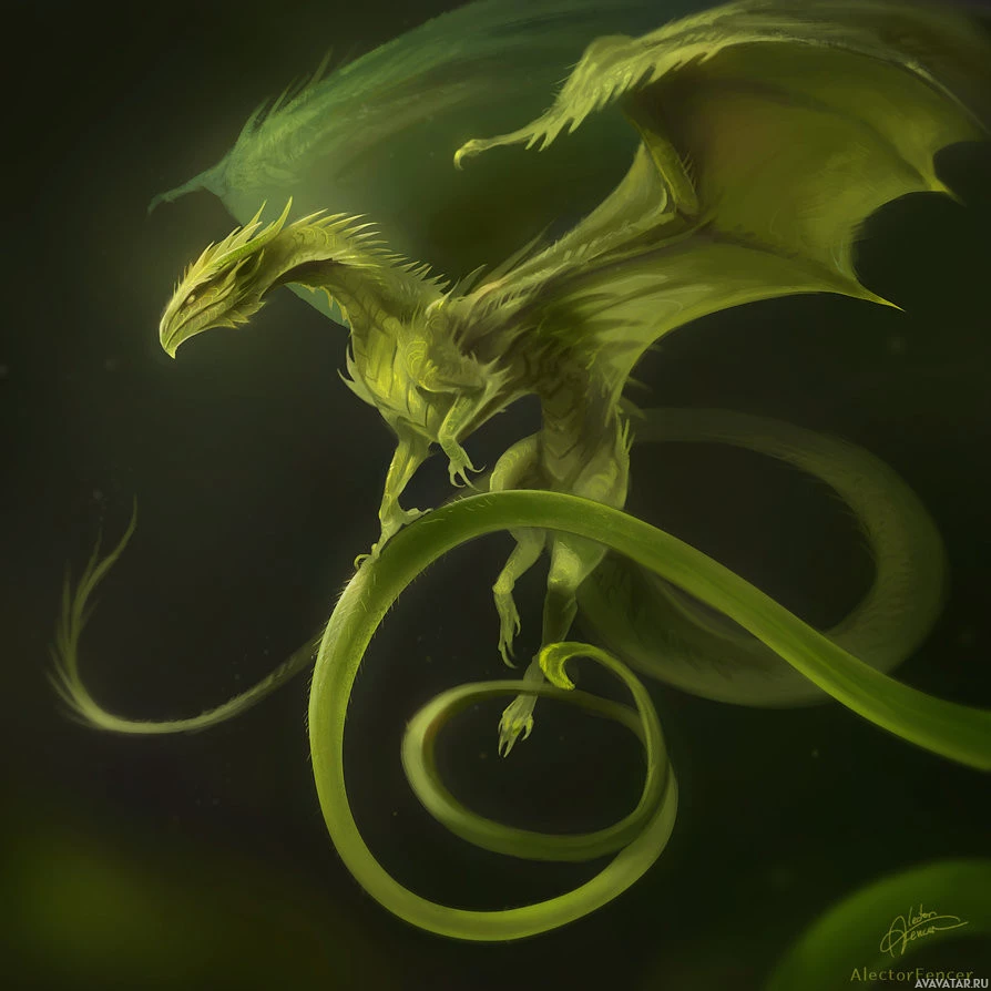 a fantasy scene featuring a dragon. The dragon is depicted with green scales, which are traditional for many mythological or