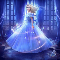 blonde hair and is wearing a tiara on her head. Her pose suggests she might be casting a spell or performing